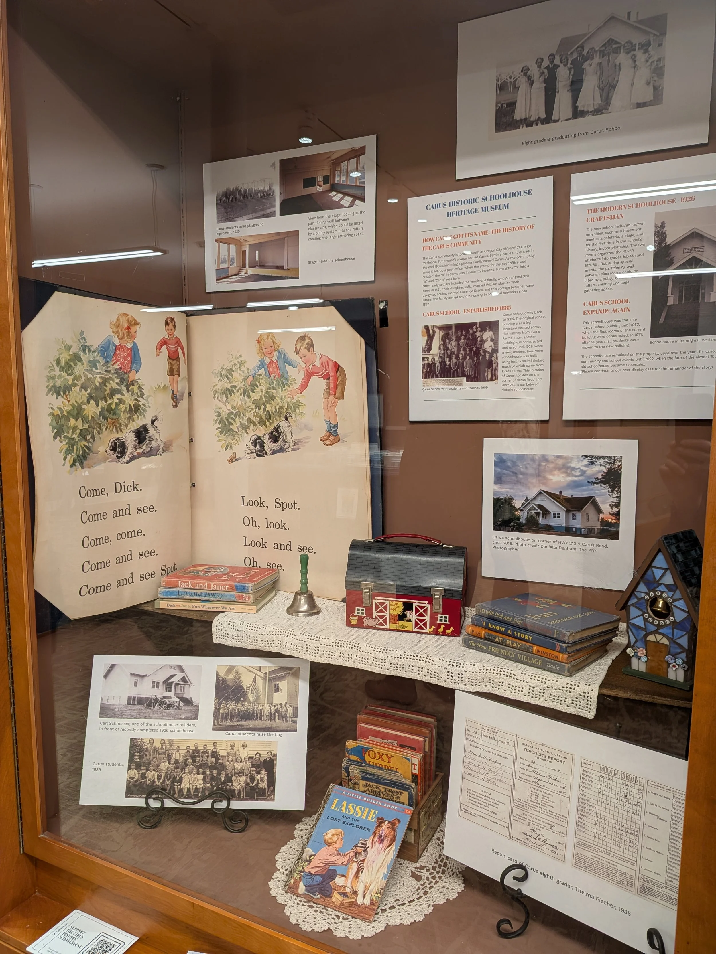 The Carus Historic Schoolhouse is proud to be one of 9 local historical nonprofits on display at the Willamette Falls & Landing Heritage Area Coalition's "Heritage in Focus" museum display!